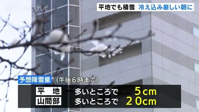 このあとは雪か雨の予報で、23日午後6時までに予想される降雪量は、東部西部ともに多いところで平地で5センチ山間部で20センチとなっています。