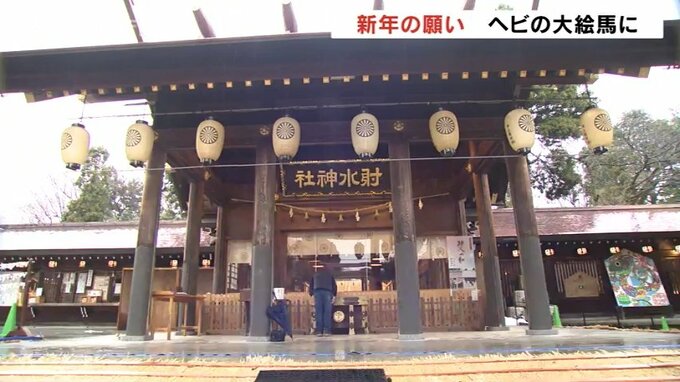 富山県高岡市の射水神社には、来年の干支「巳」の大絵馬が登場しました。