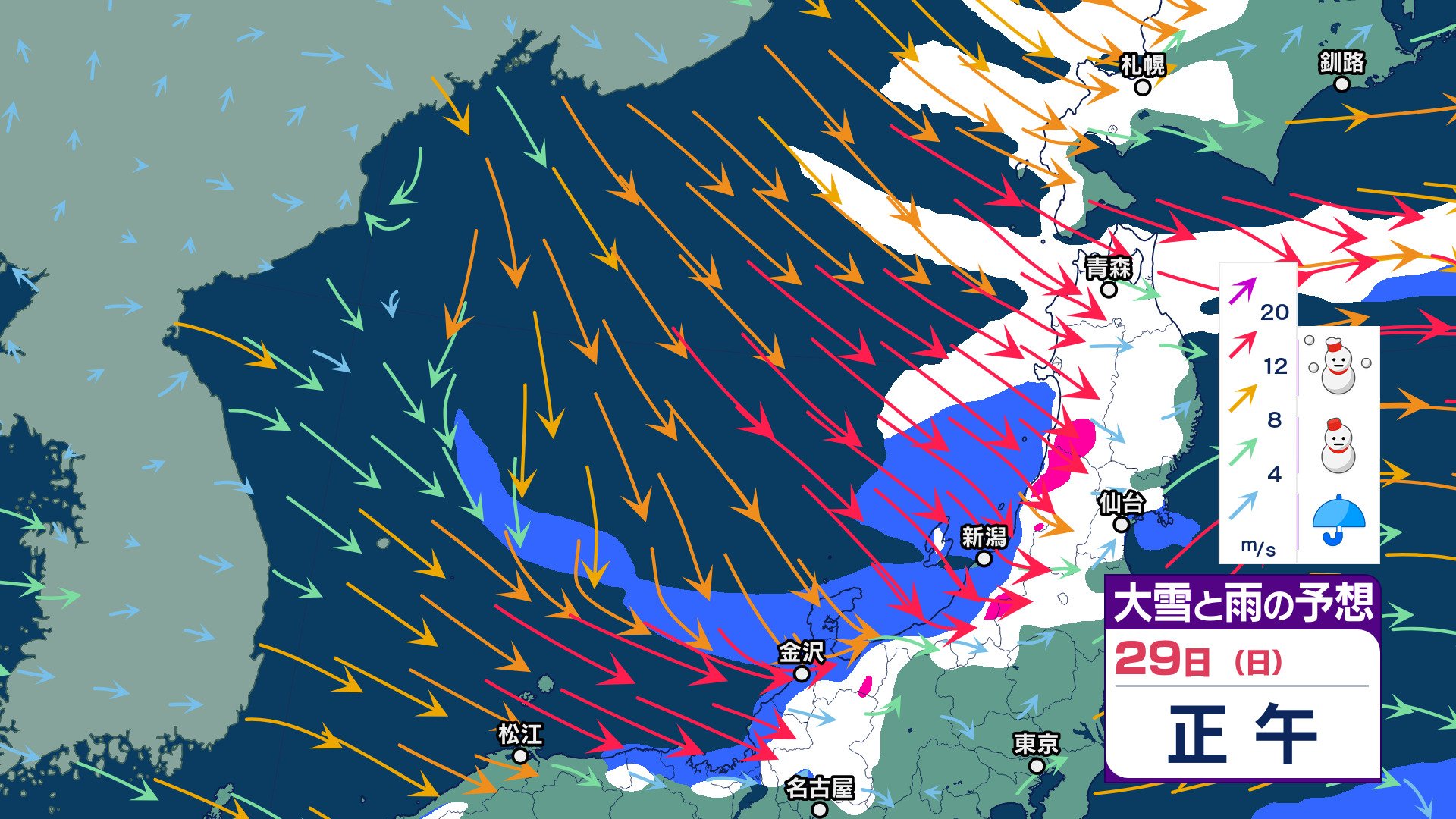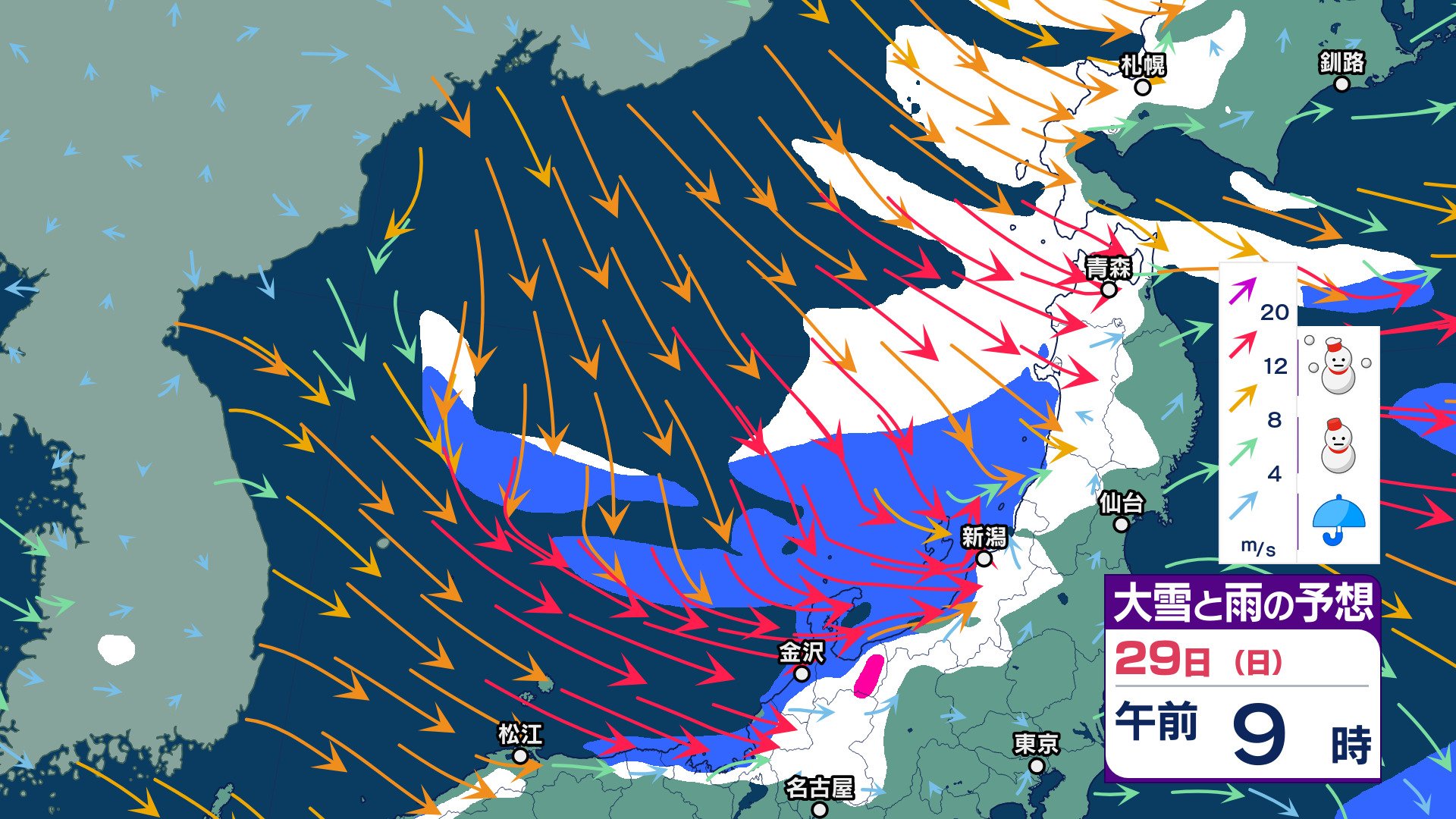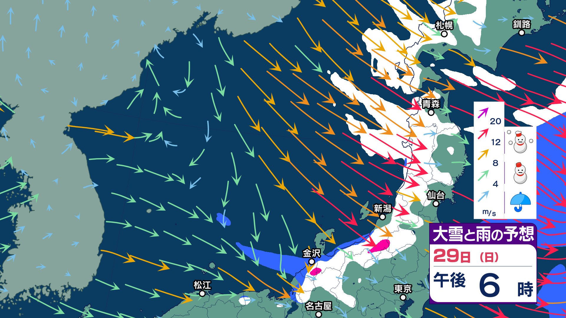 ニュースクリップ 【大雪情報 28日午後7時半更新】年末寒波で日本海側は “警報級の大雪” すでに平年の2倍近い積雪の地域も 多い所でさらに60センチ積雪か【1日までのシミュレーション 3時間ごと】交通への影響・雪崩・除雪中の事故などに十分注意を… 2024年12月28日(土) 20:00 国内 天気 29日 大雪と雨のシミュレーション
