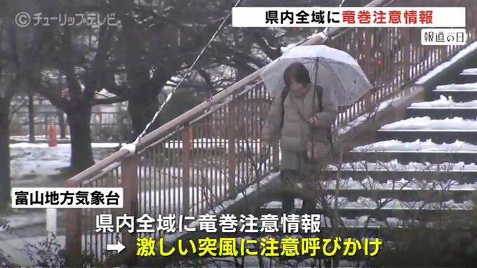 富山地方気象台は、県内全域に竜巻注意情報を出し激しい突風に注意するよう呼びかけています。