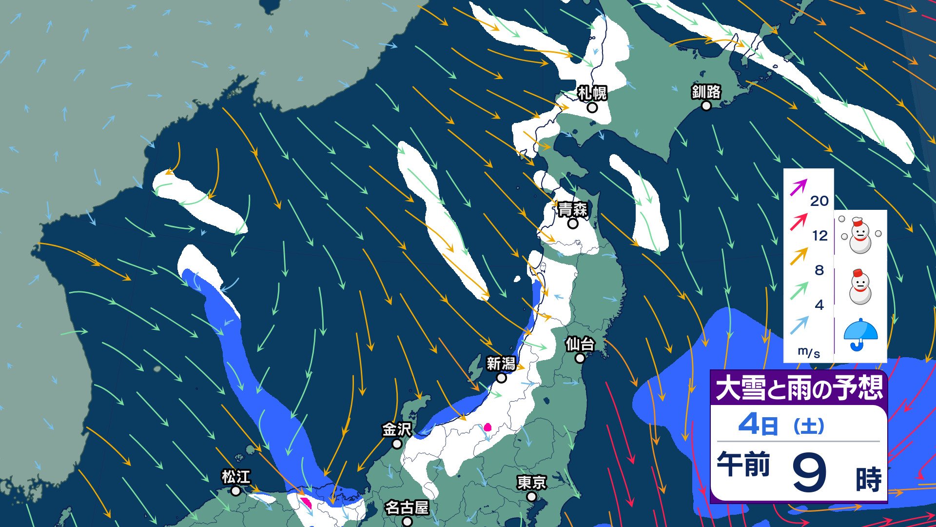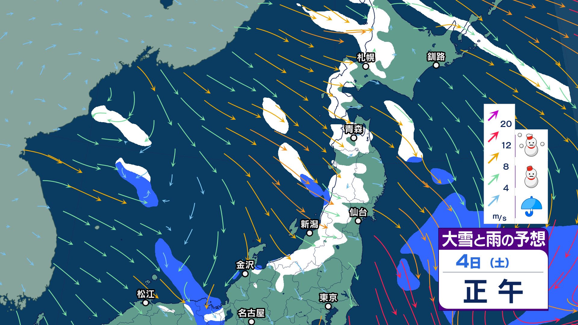 ニュースクリップ 三が日は日本海側で雪… “仕事始め” 6日頃は太平洋側も広く雨【2週間天気】8日頃から西日本を中心に大雪の可能性も【雪と雨のシミュレーション 3時間ごと】 2024年12月31日(火) 14:28 国内 天気 4日 雪雨シミュレーション(正午まで)