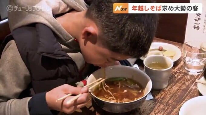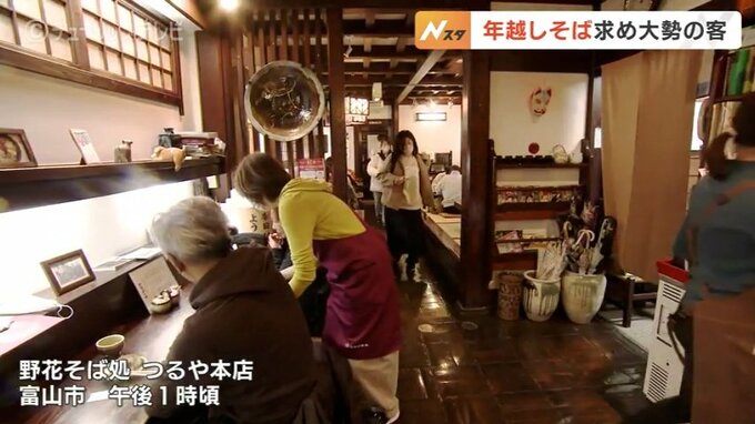 富山市の老舗そば店『つるや』には、年越しそばを食べて1年を締めくくろうと大勢の客が訪れていました。