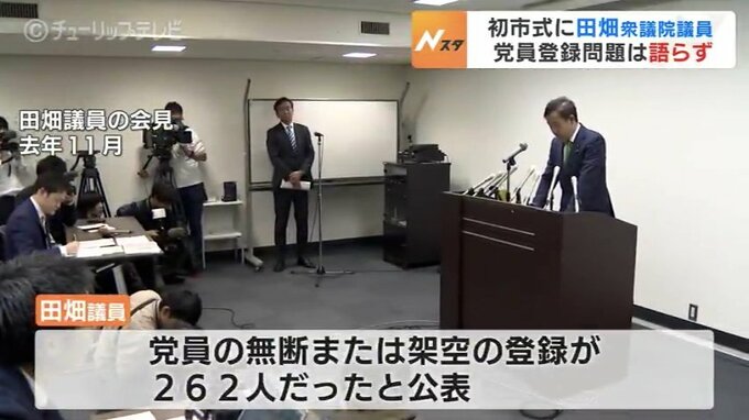 田畑議員を巡っては、去年11月の会見で党員の無断または架空登録が262人だったことを公表。