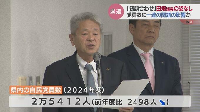 自民党県連の新年初顔合わせでは、党員数について報告があり、2024年度の党員数は2万5412人と前の年度よりおよそ2500人減少したことが伝えられました。