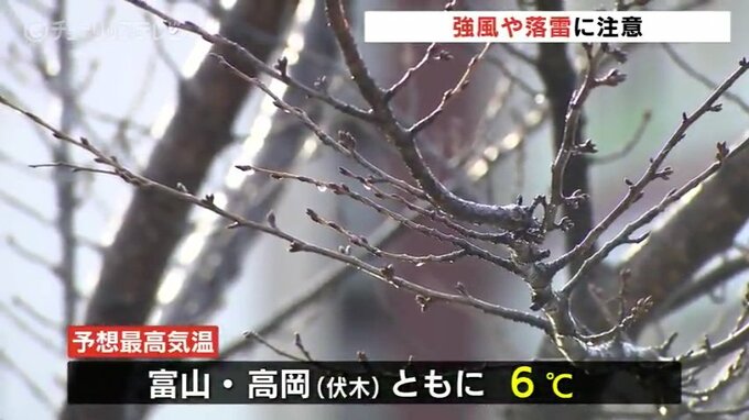 このあとは夕方にかけて雷を伴なって雨または雪となるところがあり、日中の予想最高気温は富山市、高岡市の伏木ともに6℃となっています。