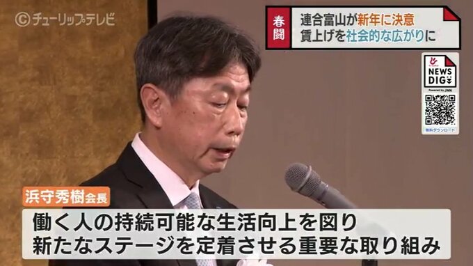 ニュースクリップ 連合富山会長「持続可能な生活向上を図る」 賃上げの社会的な広がりに全力を注ぐと表明 2025年1月7日(火) 19:55 国内 富山県内最大の労働団体、連合富山の新年祝賀会が開かれ、加盟する労働組合の代表者など約220人が出席しました。連合富山の浜守秀樹会長はことしの春闘の方針について、「働く人の持続可能な生活向上を図り、新た…