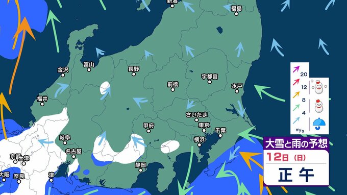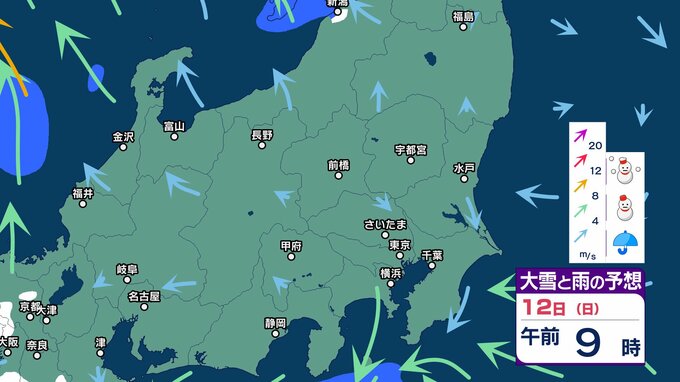 関東 3連休「南岸低気圧」の接近で東京都心など沿岸部では冷たい雨 内陸では雪の可能性 成人の日の朝は路面凍結に注意を【大雪と雨のシミュレーション13日まで】 2025年1月8日(水) 17:50 国内 天気 12日の大雪と雨のシミュレーション