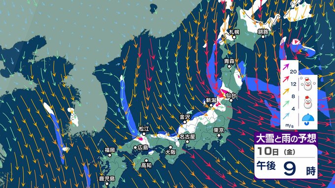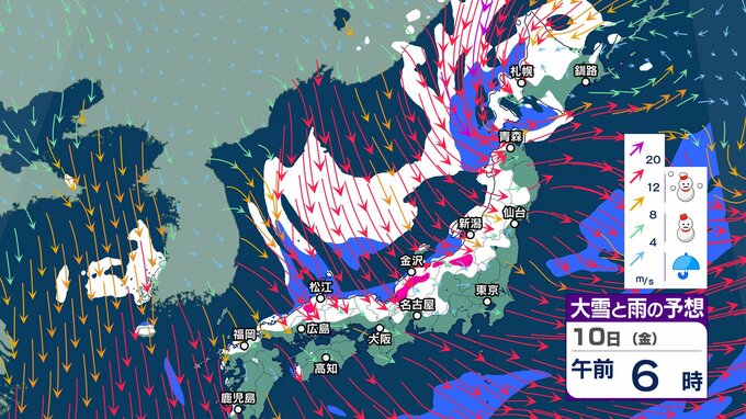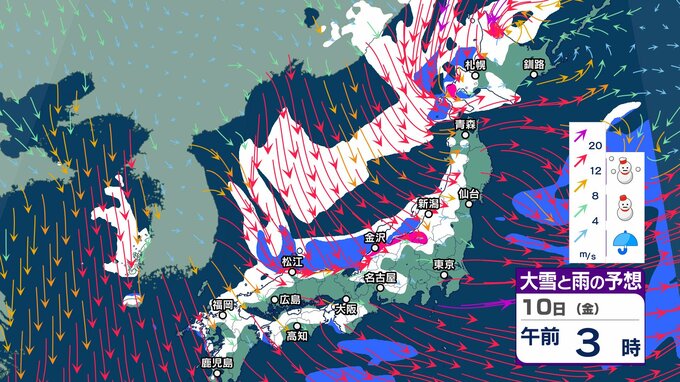 ニュースクリップ 岐阜県白川村、飛騨市河合で積雪50センチ超…“強い西風” 吹きつけ猛吹雪の所も【大雪と雨のシミュレーション13日まで】10日にかけて警報級の“大雪や暴風雪”今シーズン最強寒波で日本海側は積雪急増へ 2025年1月9日(木) 13:33 国内 天気 10日(金)大雪と雨のシミュレーション