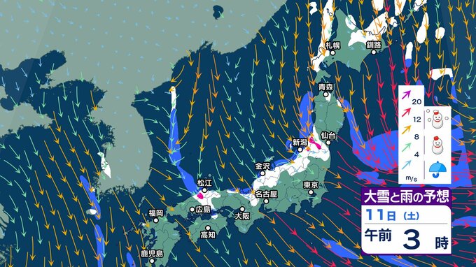 ニュースクリップ 岐阜県白川村、飛騨市河合で積雪50センチ超…“強い西風” 吹きつけ猛吹雪の所も【大雪と雨のシミュレーション13日まで】10日にかけて警報級の“大雪や暴風雪”今シーズン最強寒波で日本海側は積雪急増へ 2025年1月9日(木) 13:33 国内 天気 11日(土)大雪と雨のシミュレーション