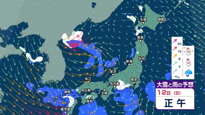 ニュースクリップ 岐阜県白川村、飛騨市河合で積雪50センチ超…“強い西風” 吹きつけ猛吹雪の所も【大雪と雨のシミュレーション13日まで】10日にかけて警報級の“大雪や暴風雪”今シーズン最強寒波で日本海側は積雪急増へ 2025年1月9日(木) 13:33 国内 天気 12日(日)大雪と雨のシミュレーション