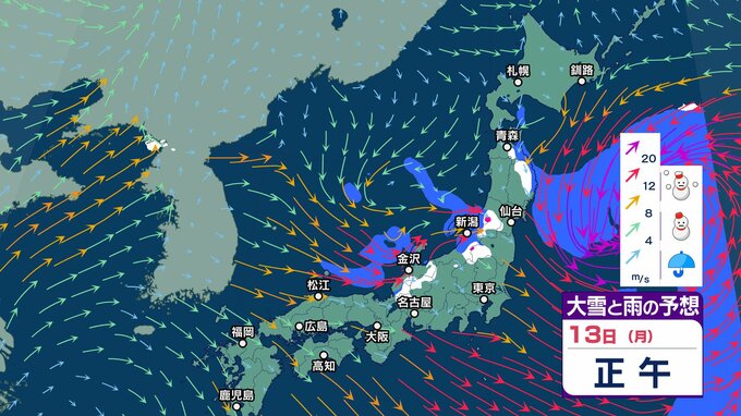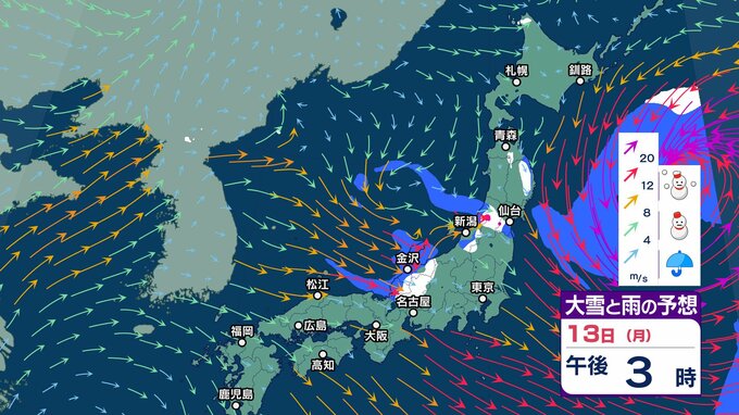 ニュースクリップ 岐阜県白川村、飛騨市河合で積雪50センチ超…“強い西風” 吹きつけ猛吹雪の所も【大雪と雨のシミュレーション13日まで】10日にかけて警報級の“大雪や暴風雪”今シーズン最強寒波で日本海側は積雪急増へ 2025年1月9日(木) 13:33 国内 天気 13日(月)大雪と雨のシミュレーション