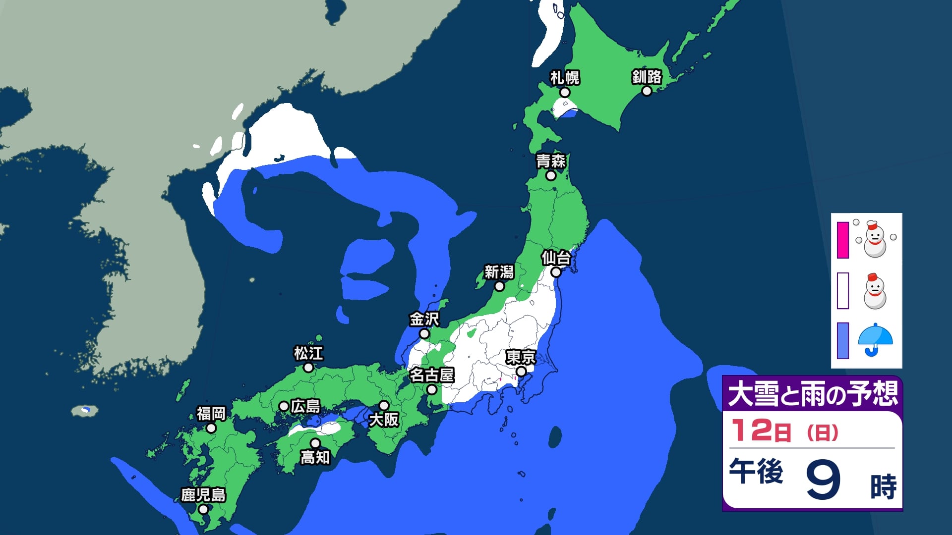 ニュースクリップ 10日正午にかけて寒気ピーク…雪はいつ?どこで降る?日本海側の平地も大雪のおそれ【大雪と雨のシミュレーション 13日まで】 2025年1月9日(木) 22:00 国内 天気 12日の大雪と雨のシミュレーション