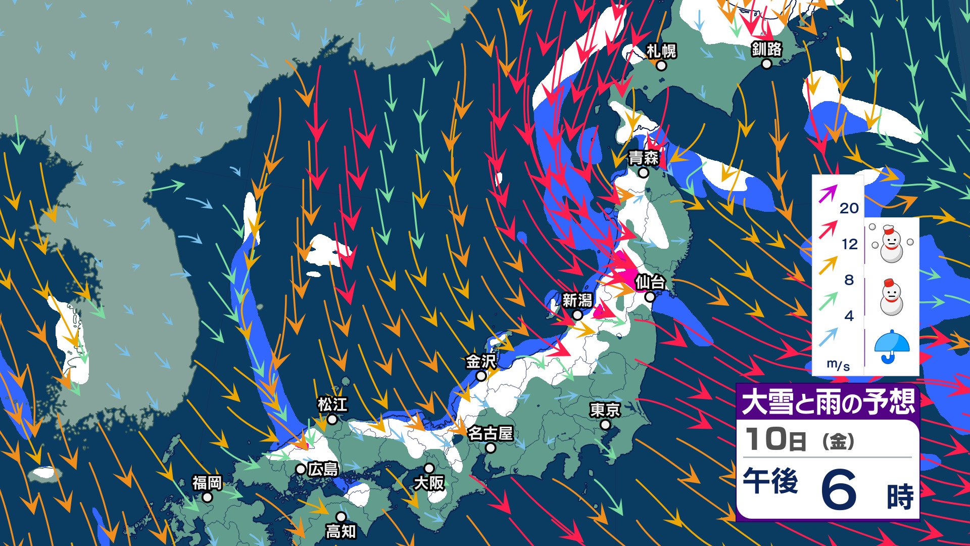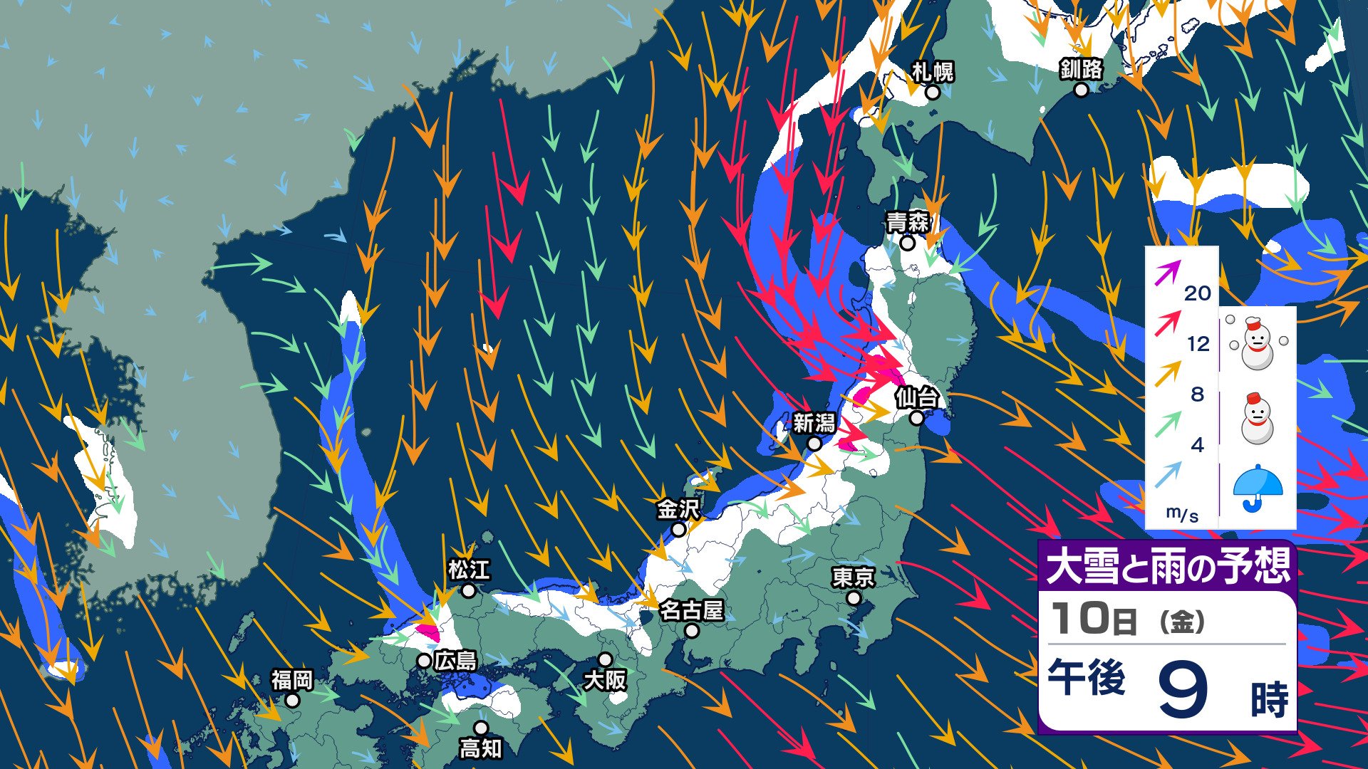 ニュースクリップ 【強烈寒波】日本海側は11日にかけても積雪 増える見込み【大雪と雨のシミュレーション 14日まで】交通機関の乱れ、路面の凍結、雪崩、屋根からの雪、除雪中の事故に注意 2025年1月10日(金) 15:58 国内 天気 10日の大雪と雨のシミュレーション