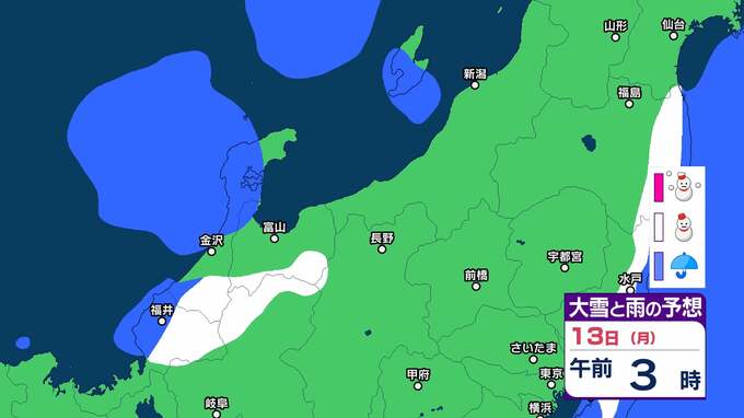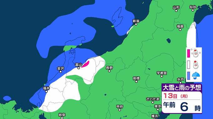 ニュースクリップ 【大雪情報】いつまで降るの?北陸はピーク越えたものの、まだまだ平地でも大雪となる所が…【3連休大雪と雨のシミュレーション 】 2025年1月10日(金) 17:30 国内 天気 13日の大雪と雨のシミュレーション