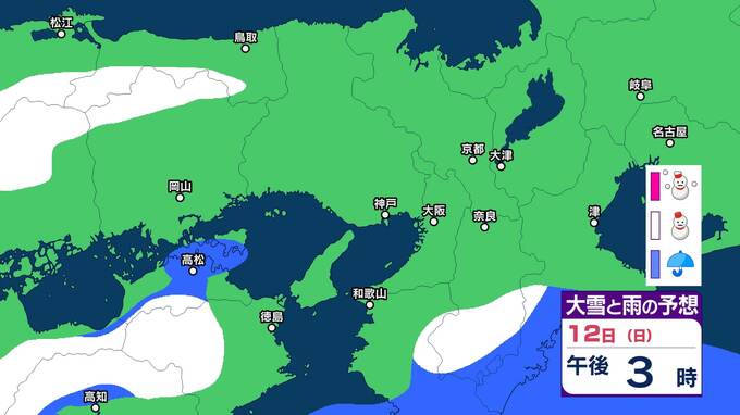ニュースクリップ 【積雪急増・近畿】寒気の影響が残りあす昼前にかけて大雪となる見込み 北部・中部で50㎝南部で10㎝の降雪予想【15日まで大雪と雨のシミュレーション】 2025年1月10日(金) 18:40 国内 天気 12日の大雪と雨のシミュレーション