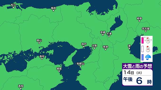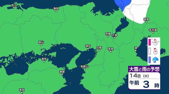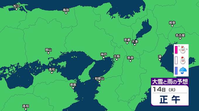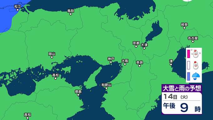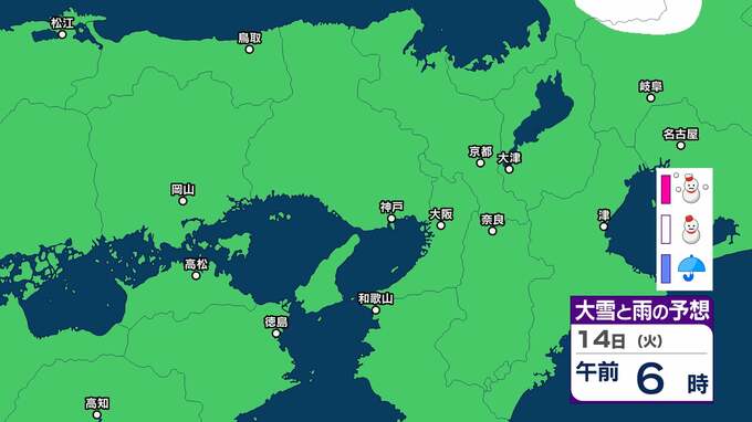 ニュースクリップ 【積雪急増・近畿】寒気の影響が残りあす昼前にかけて大雪となる見込み 北部・中部で50㎝南部で10㎝の降雪予想【15日まで大雪と雨のシミュレーション】 2025年1月10日(金) 18:40 国内 天気 14日の大雪と雨のシミュレーション