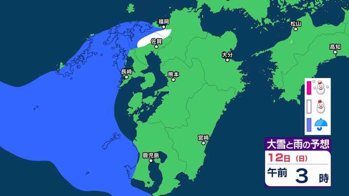 ニュースクリップ 【大雪情報・午後7時更新】九州 再び大雪のおそれ 佐賀県15㎝ 福岡・長崎県10㎝の降雪予想 あす明け方から【大雪と雨のシミュレーション 14日まで】 2025年1月11日(土) 18:55 国内 天気 12日の大雪と雨のシミュレーション