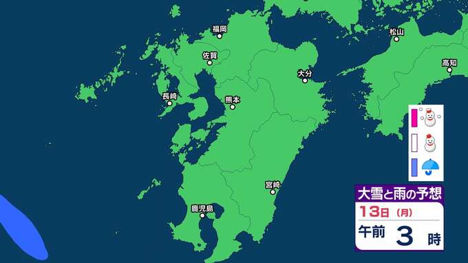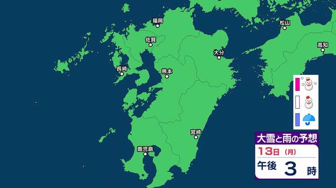 ニュースクリップ 【大雪情報・午後7時更新】九州 再び大雪のおそれ 佐賀県15㎝ 福岡・長崎県10㎝の降雪予想 あす明け方から【大雪と雨のシミュレーション 14日まで】 2025年1月11日(土) 18:55 国内 天気 13日の大雪と雨のシミュレーション