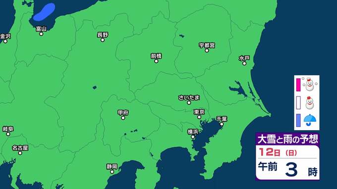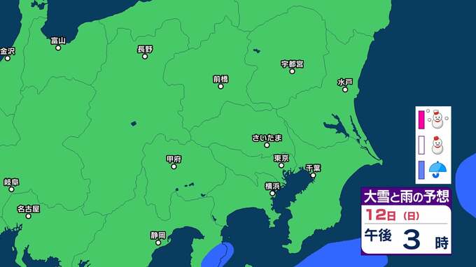 ニュースクリップ 【気象情報】千葉県ではあす朝からあさってはじめにかけて雪が降る所も…予想より気温が低く経過すれば“積雪”となる可能性も【大雪と雨のシミュレーション 13日まで】 2025年1月11日(土) 19:08 国内 天気 12日の大雪と雨のシミュレーション