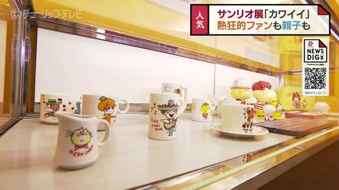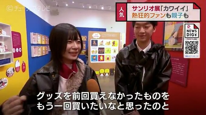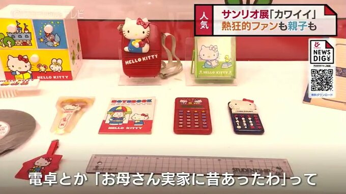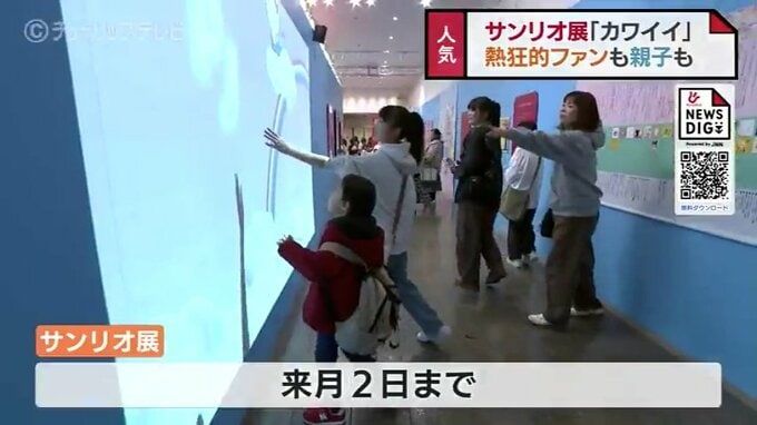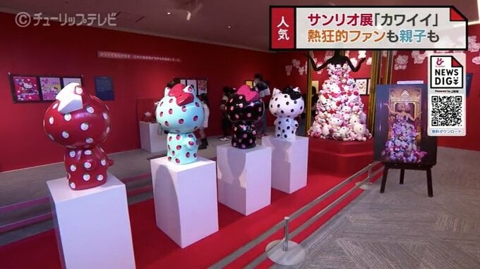 富山市民プラザで開催中の「サンリオ展ニッポンのカワイイ文化60年史」。3連休最終日の13日は若者や親子連れでにぎわっていました。