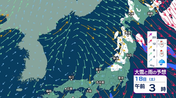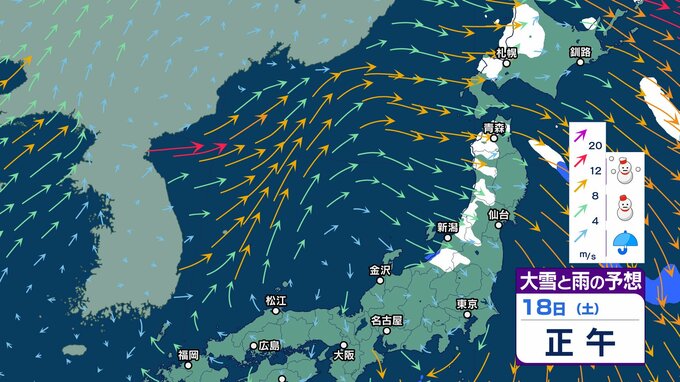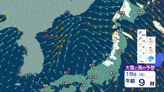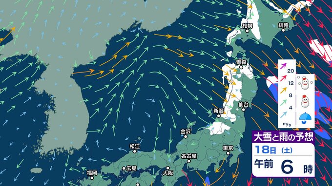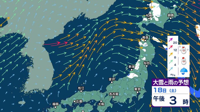 ニュースクリップ 15日午後の北陸は次第に冬型の気圧配置へ “嵐の使者” 上空にマイナス30℃以下の寒気【気象情報 15日午前7時更新】夜遅くにかけて落雷や竜巻などの激しい突風、ひょうに注意【大雪と雨シミュレーション18午後3時まで】 2025年1月15日(水) 07:39 国内 天気 18日 大雪と雨のシミュレーション