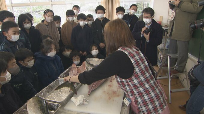 ニュースクリップ 「ここが真っ白やから、とてもいいブリやよ」教室で寒ブリを解体…そしてみんなで舌鼓 富山・氷見市 2025年1月15日(水) 21:58 国内 話題・グルメ 豊漁が続く富山湾の味覚 “寒ブリ” 小学生が舌鼓です。富山県氷見市の湖南小学校に持ち込まれたのは、この日の朝、氷見漁港で水揚げされた重さ10.3キロの寒ブリです。これは、氷見市が子どもたちに地元の魚の魅…