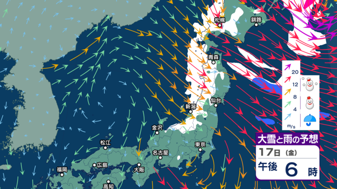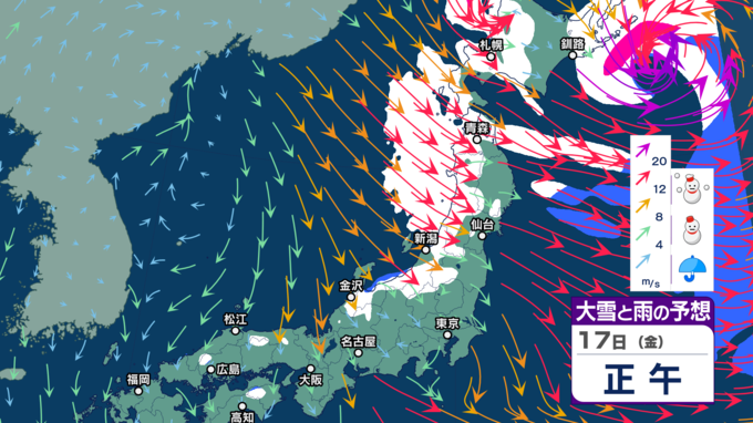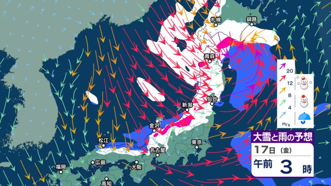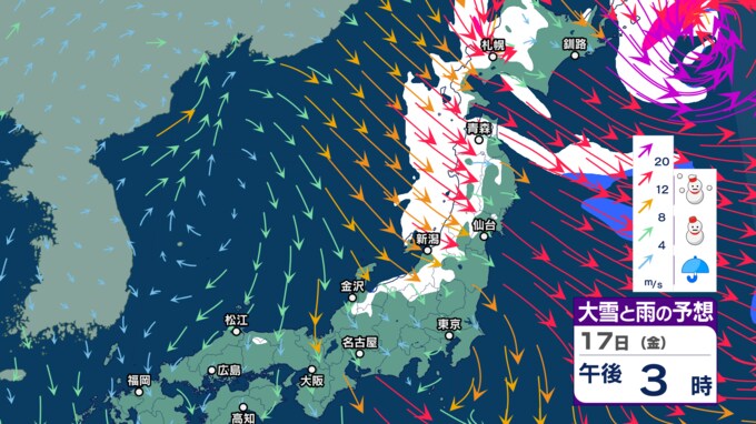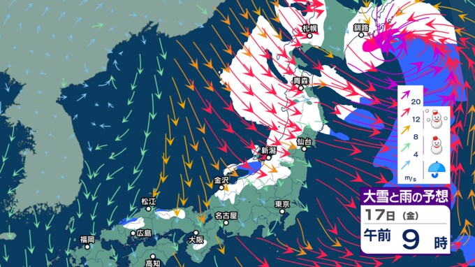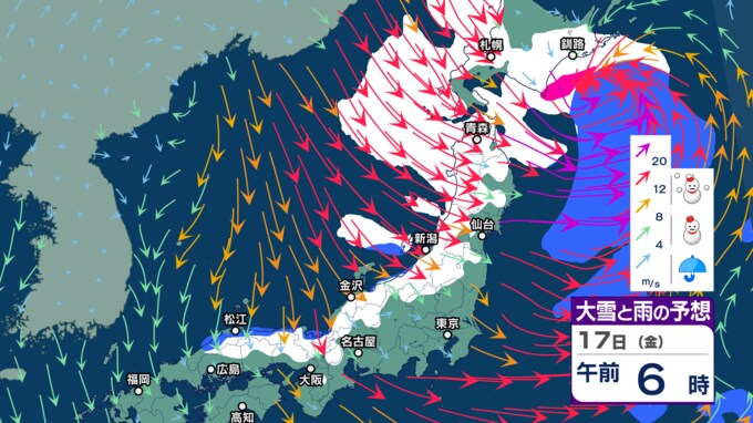 ニュースクリップ 全国的に真冬の寒さ… “大学入学共通テスト” 頃に冷え込みピークへ【大雪と雨シミュレーション 20日午前6時まで】受験生は暖かい装いで…インフルエンザに注意 2025年1月16日(木) 14:13 国内 天気 17日(金)大雪と雨のシミュレーション
