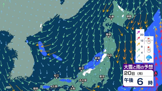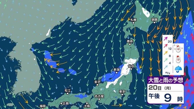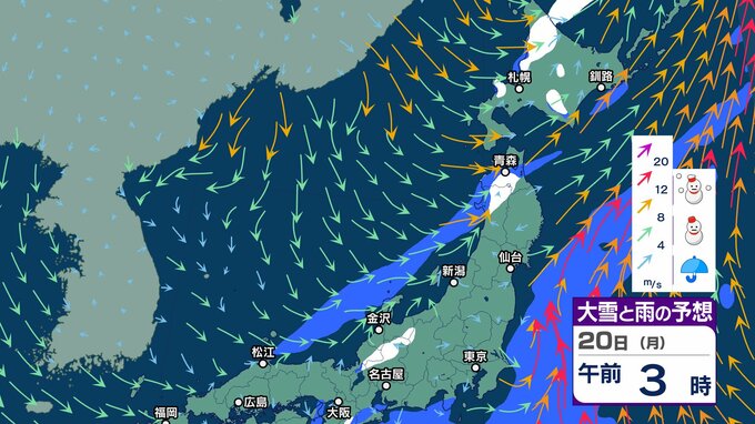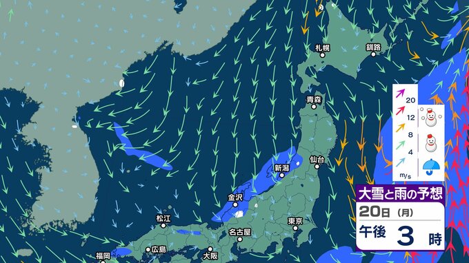 ニュースクリップ 20日の太平洋側は雨…「大寒」でも気温は平年より高め【2週間天気】1年で最も寒い時期でも平年上回る日が多い【大雪と雨シミュレーション 21日午後3時まで】 2025年1月17日(金) 15:30 国内 天気 20日(月)大雪と雨のシミュレーション