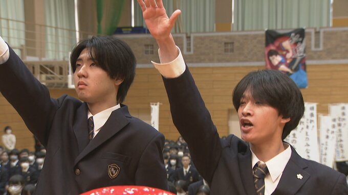 式では、片山浄見理事長が「受験はチームプレー。精一杯自分の力を発揮し、みんなで合格を勝ち取ってほしい」と激励し、後輩たちからも受験生へエールが送られました。