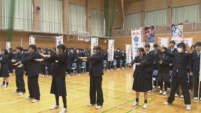 大学入試に挑む、受験生にエールです。県内唯一の中高一貫校富山市の片山学園で17日、創立当初から続く伝統の大学入試壮行会が行われました。