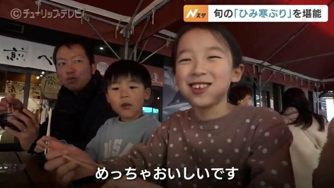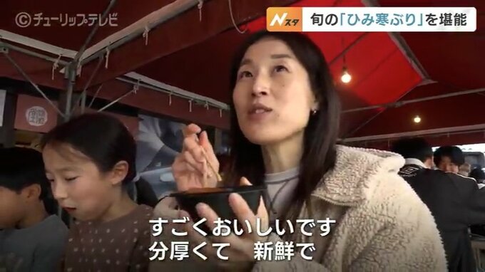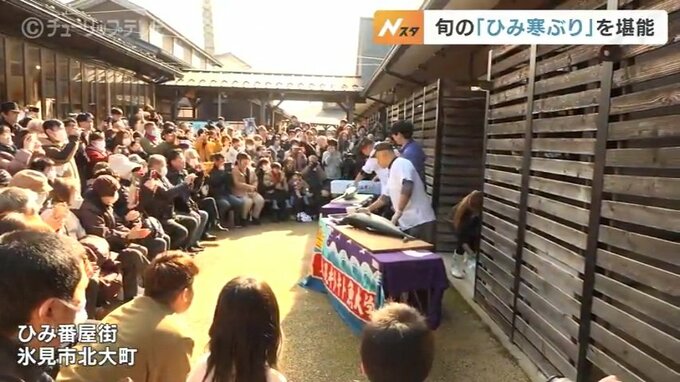 富山県氷見市の「ひみ番屋街」では旬のひみ寒ぶりを堪能できる恒例のイベントが開かれ、県内外からの大勢の人でにぎわいました。