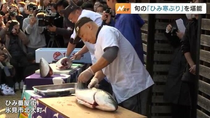 イベントでは10キロを超える「ひみ寒ぶり」の解体ショーが行われ、訪れた人は迫力ある捌き方に見入っていました。