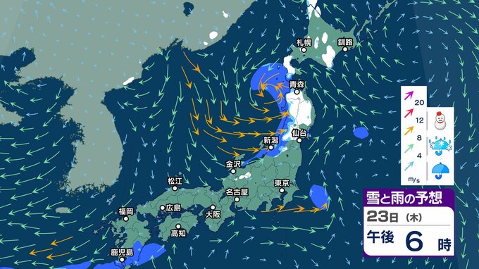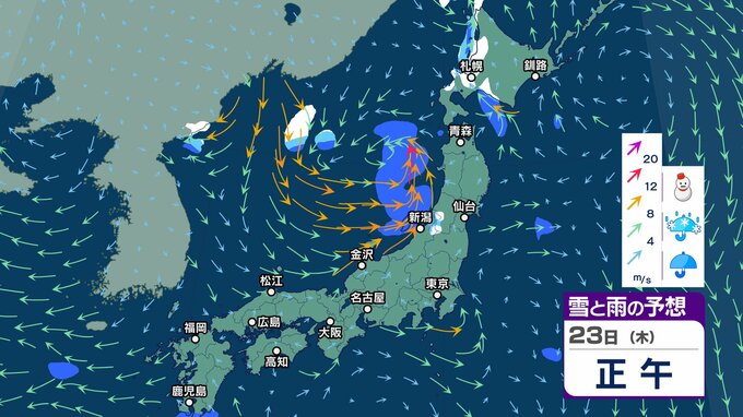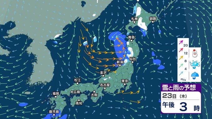 ニュースクリップ 今週末25日 26日は北陸の平地で降雪か…短い周期で寒気南下【雪と雨のシミュレーション】23日は南風で3月並みの暖かさ 2025年1月23日(木) 05:57 国内 天気 23日(木)雪と雨のシミュレーション
