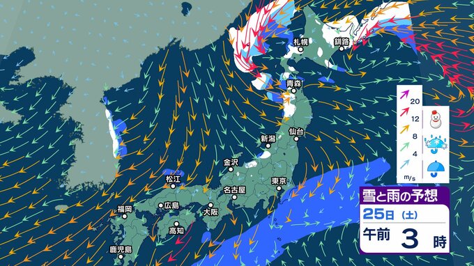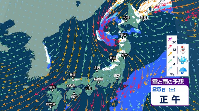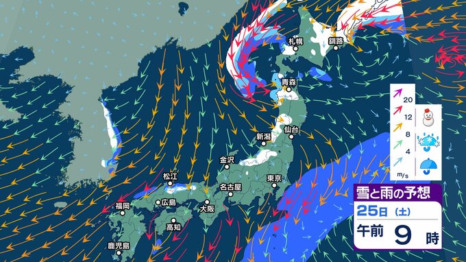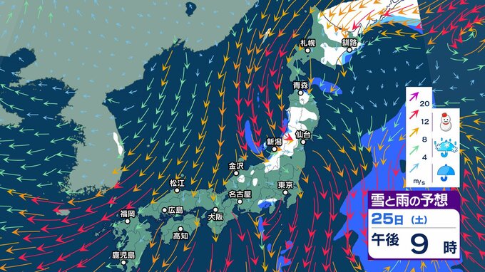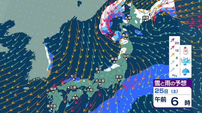 ニュースクリップ 今週末25日 26日は北陸の平地で降雪か…短い周期で寒気南下【雪と雨のシミュレーション】23日は南風で3月並みの暖かさ 2025年1月23日(木) 05:57 国内 天気 25日(土)雪と雨のシミュレーション