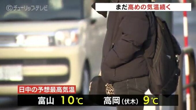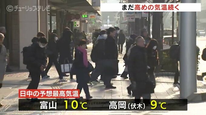 日中の予想最高気温は、富山で10度高岡伏木で9度とこの時期としては高めの見込みです。