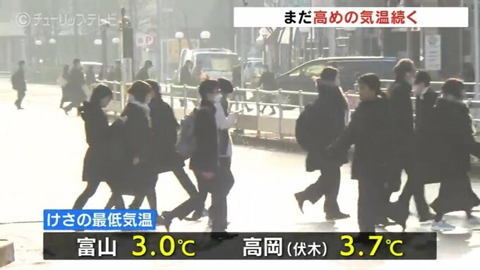 24日の富山県内は、風は冷たく感じるもののこの時期にしては比較的気温が高めな朝となりました。