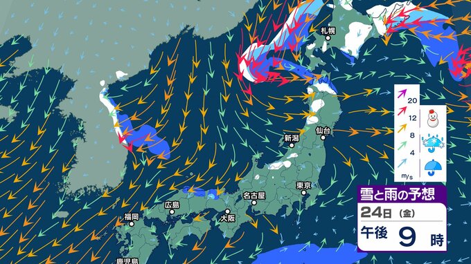 ニュースクリップ 「春」から「冬」へ体感ガラリ “逆戻り” 25日は東京で寒中の寒さ…来週は福岡など一桁続く見込み【雪と雨と風のシミュレーション】 2025年1月24日(金) 17:41 国内 天気 24日(金)雪と雨と風のシミュレーション