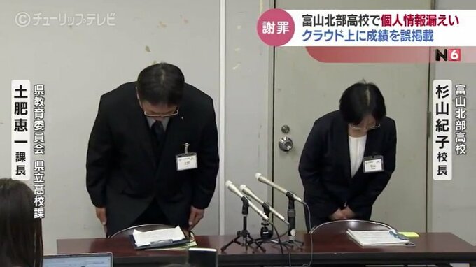 ニュースクリップ 県立高校で今年度4件目の個人情報流出 3年生19人分の「名字」と「成績」クラウド上に1か月以上誤掲載 富山県教育委員会「外部への流出はない」 2025年1月24日(金) 19:33 国内 富山北部高校で、3年生の「生徒の名前」や「成績」19人分が、誤ってクラウド上で生徒が閲覧できる状態になっていたことが24日わかりました。富山県教育委員会によりますと、閲覧できる状態になっていたのは、去年1…