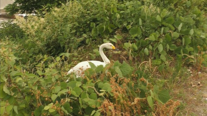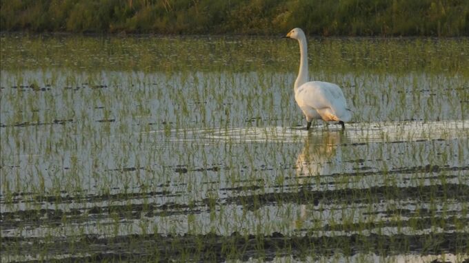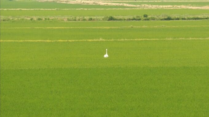“歩く白鳥”はキツネを察知したのか、水が張ってある田んぼに入り、難を逃れました。その一部始終を目撃していた澤江さんは…。