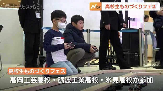 イベントはチューリップテレビが県内のものづくりに励む高校生を応援しようと企画したもので、高岡工芸高校、砺波工業高校、氷見高校が参加しました。