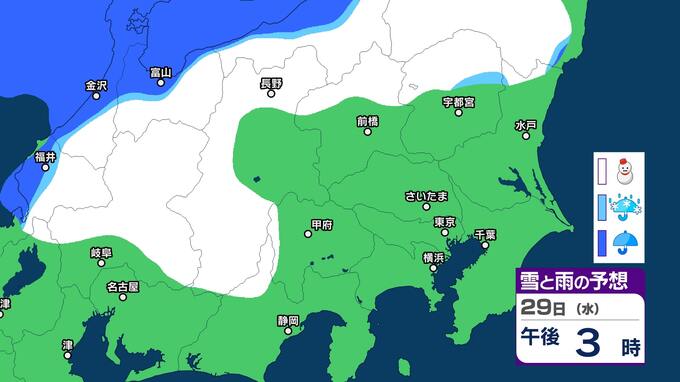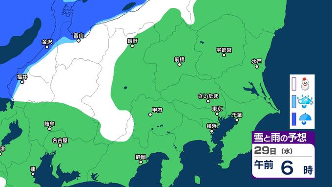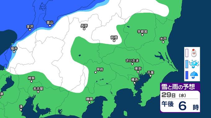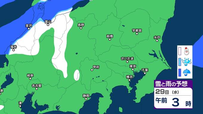 関東甲信 今夜からあす明け方は山沿いを中心に雪 都心周辺でも雪のまじる所も【雪と雨のシミュレーション2月1日まで】