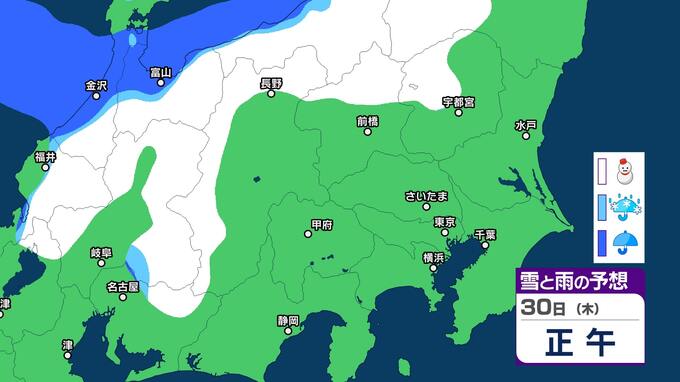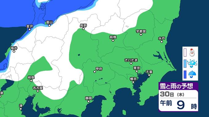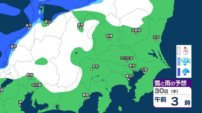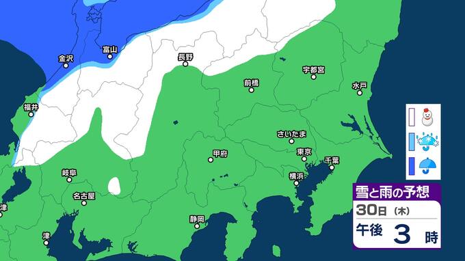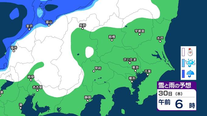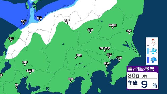 関東甲信 今夜からあす明け方は山沿いを中心に雪 都心周辺でも雪のまじる所も【雪と雨のシミュレーション2月1日まで】