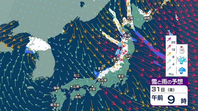ニュースクリップ 【大雪情報】30日頃にかけて北陸や東北の日本海側に “嵐の使者” 強い寒気 南下【2週間天気】2月3日頃の「立春」も厳しい寒さ…再び真冬の寒さ【雪と雨と風のシミュレーション】 2025年1月27日(月) 16:55 国内 天気 雪と雨と風のシミュレーション 31日(金)