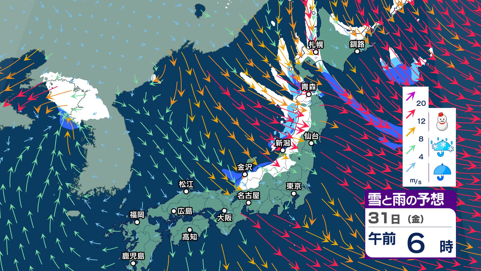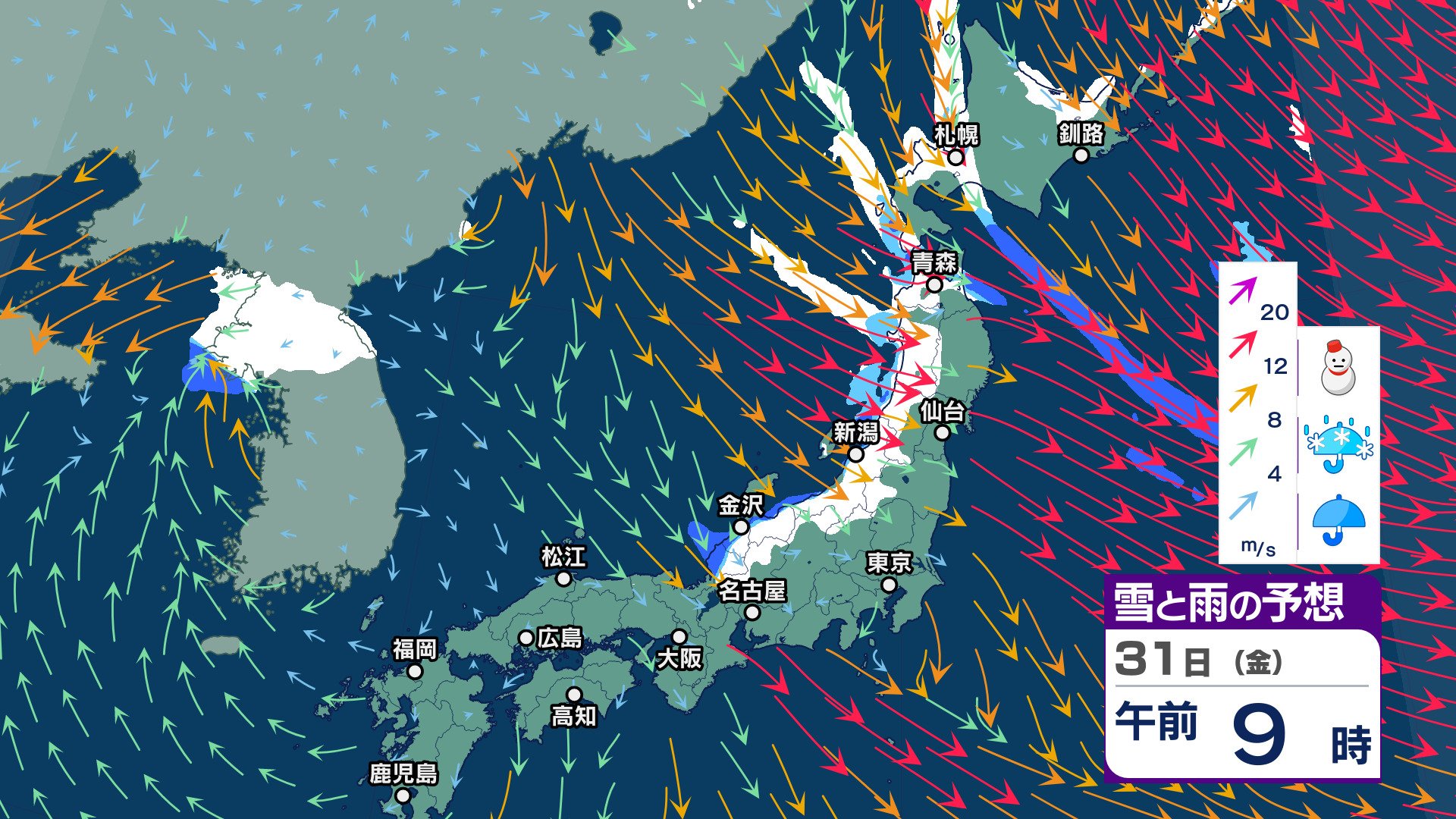 ニュースクリップ 【大雪情報午後4時更新】九州北部山地を中心に大雪のおそれ 山口県は20㎝ 福岡・佐賀県でも10㎝の降雪予想【雪と雨と風のシミュレーション】 2025年1月27日(月) 16:11 国内 天気 雪と雨と風のシミュレーション 31日(金)