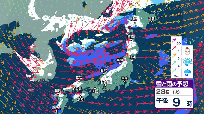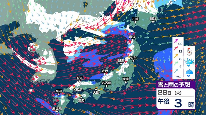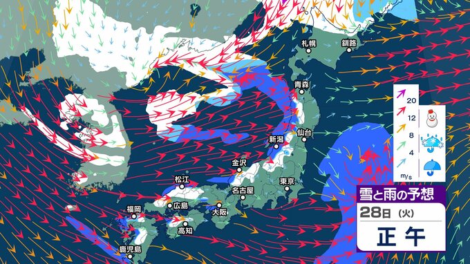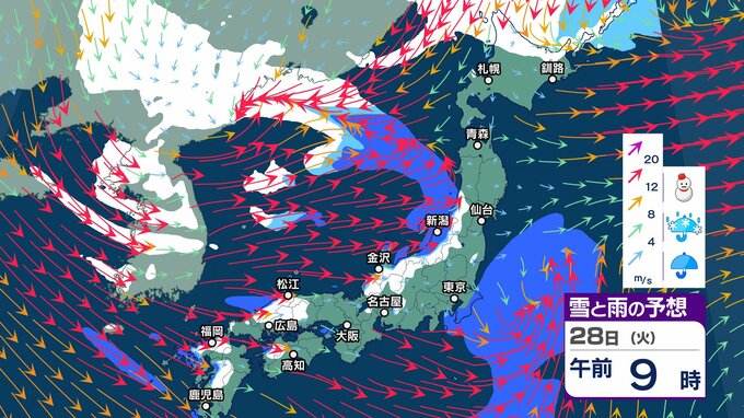ニュースクリップ “立春寒波”が到来 30日頃にかけて“強烈寒気”が南下し日本海側で大荒れか 北陸~山陰で大雪のおそれ【雪と雨と風のシミュレーション】 2025年1月27日(月) 20:00 国内 天気 雪と雨と風のシミュレーション 28日(火)