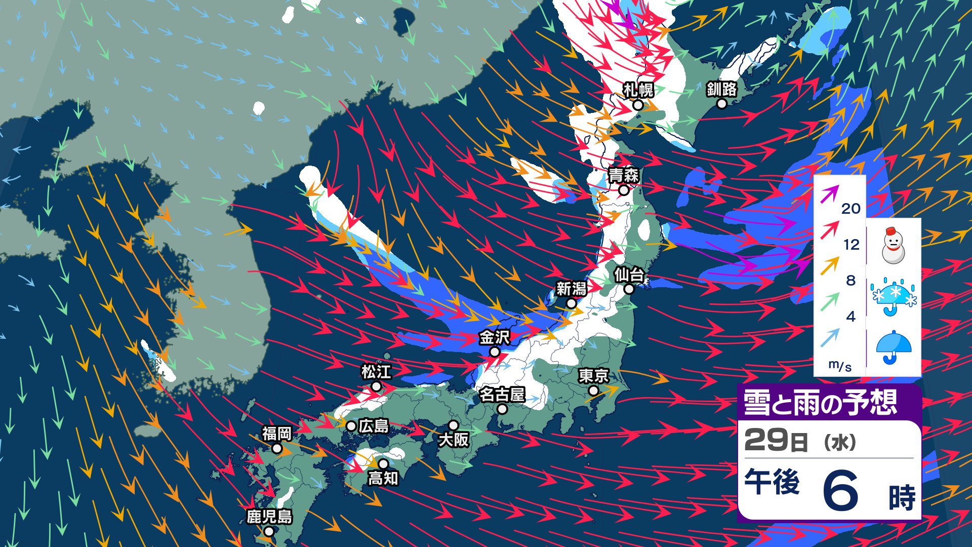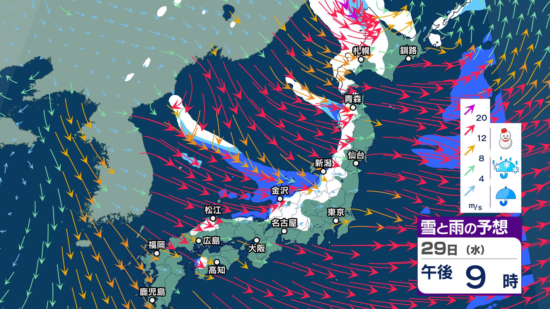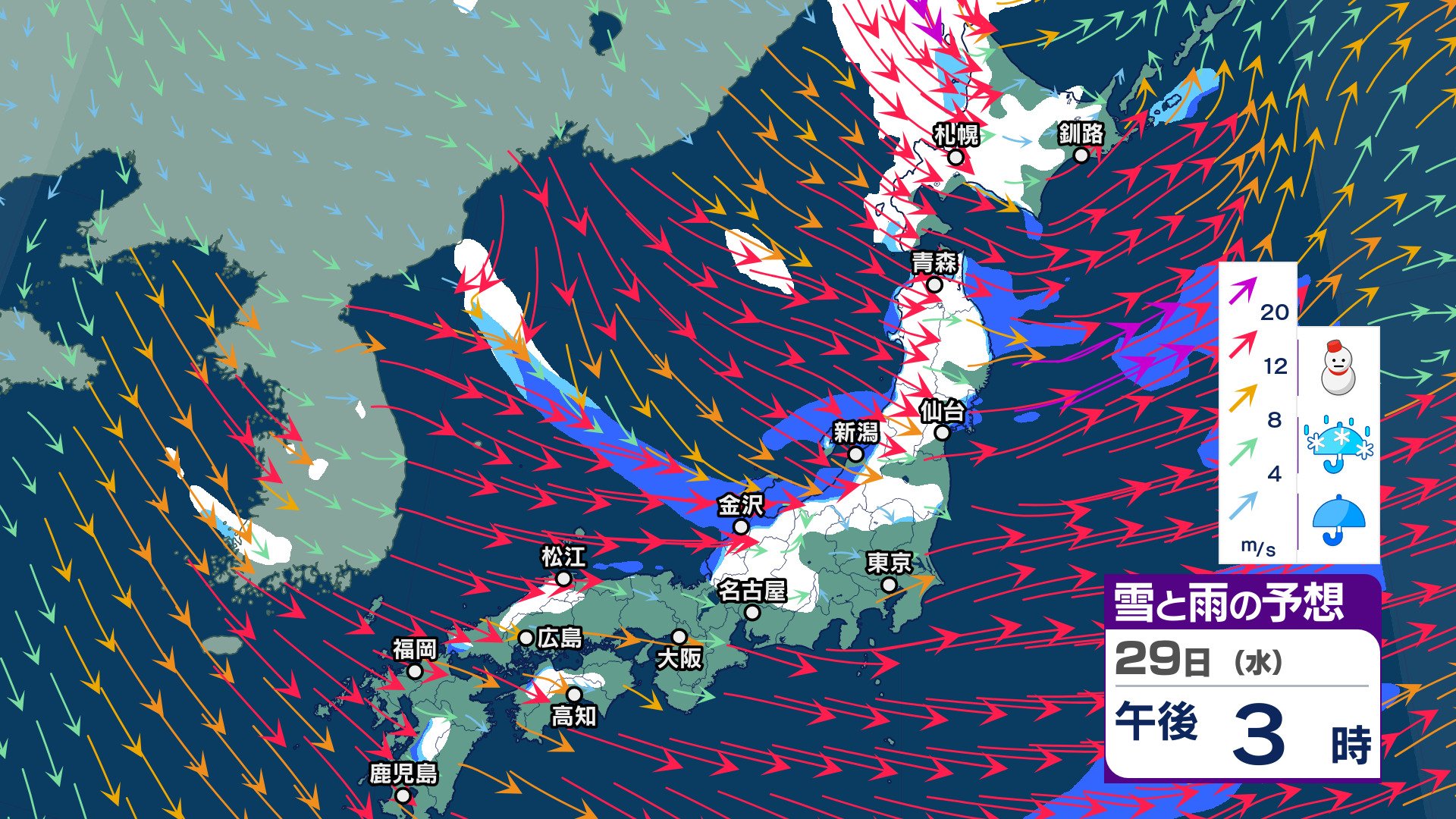 ニュースクリップ “立春寒波”が到来 30日頃にかけて“強烈寒気”が南下し日本海側で大荒れか 北陸~山陰で大雪のおそれ【雪と雨と風のシミュレーション】 2025年1月27日(月) 20:00 国内 天気 雪と雨と風のシミュレーション 29日(水)