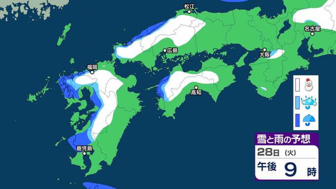 【雪予想・午後5時更新】四国地方は平地でも大雪となる所も 愛媛県はあす夕方にかけて『警報級の大雪』の可能性【雪と雨のシミュレーション】 2025年1月28日(火) 17:36 国内 天気 28日の雪と雨のシミュレーション