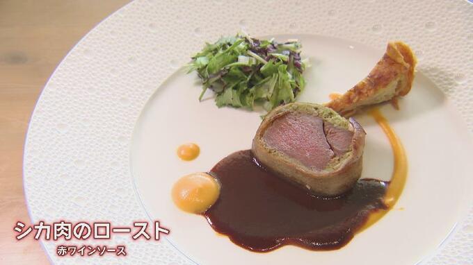 さらに30分かけてじっくり火を入れたシカ肉のロースト。