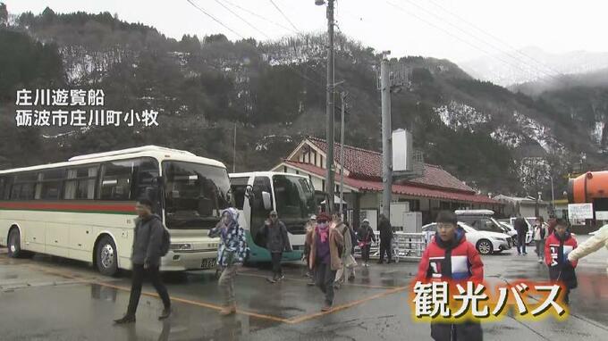 庄川遊覧船によりますと、インバウンド需要の回復に春節の大型連休が重なり、28日でも台湾から12団体300人以上の観光客を受け入れていて、30分おきに船を出す忙しさだということです。