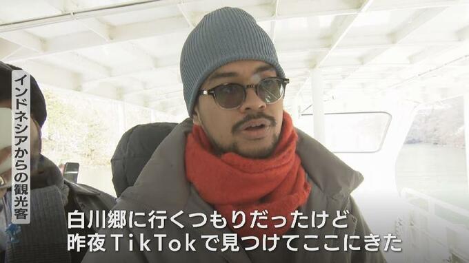 「私たちはコンテンツクリエーターです。TikTok。白川郷に行くつもりだったけど、昨日の夜TikTokで見つけてここにきた。すごい!」